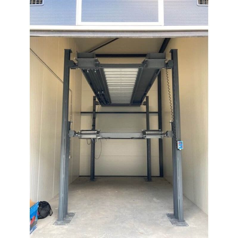 Divu kolonnu autostāvvietu lifts ar apsildāmo grīdu segumu