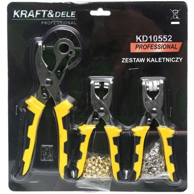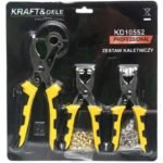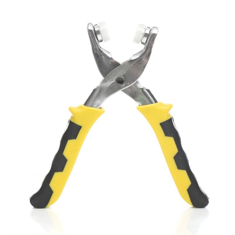1gb – 220 mm caurumu pievilkšanas knaibles. Piemērotas caurumu veidošanai ar diametru: 2.5 mm, 3 mm, 3.5 mm, 4 mm, 4.5 mm un 5 mm. Knaibles ir paredzētas caurumu veidošanai filcā, ādā, tekstilē, plastikāta plēvēs, kartonā un citur.