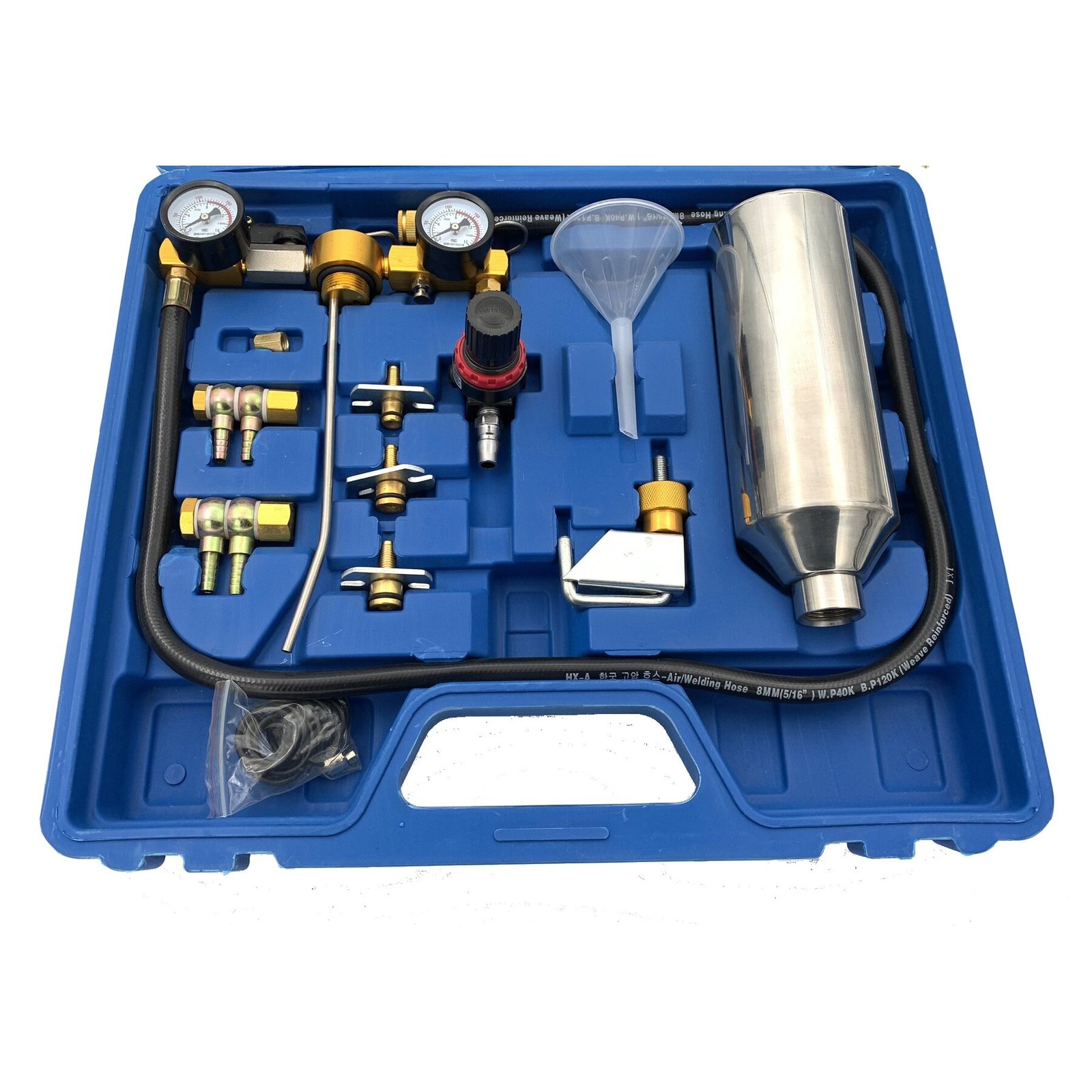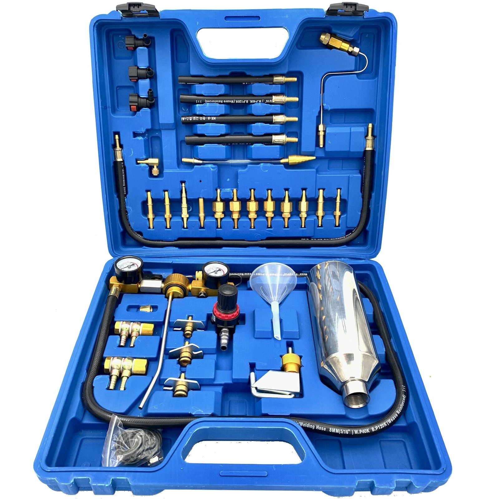 Plaši izmantojami dzinēju tīrīšanas rīki – šis iesmidzinātāju tīrīšanas rīku komplekts tiek plaši izmantots gandrīz visos automobiļu un vieglo kravas automobiļu veidos, un tam ir pilns piederumu komplekts, ieskaitot dažādus adapterus (piemēram: vienvirziena vārsts, kas paredzēts gāzes hermetizācijai un izturīgam spiediena regulētājam, pretslīdēšanas šļūtene utt.)