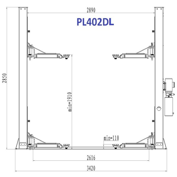 Divu stabu hidrauliskais pacēlājs (ar pagarinātiem rokām), 4,0t