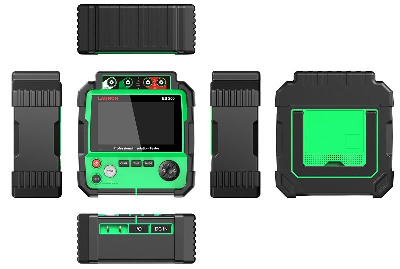 - Launch ES200 EV var izmantot, lai izmērītu izolācijas pretestību starp elektriskā transportlīdzekļa virsbūvi un augstsprieguma akumulatora savienojuma līnijām, katru līniju vienkārši mēra pret automašīnas virsbūvi.