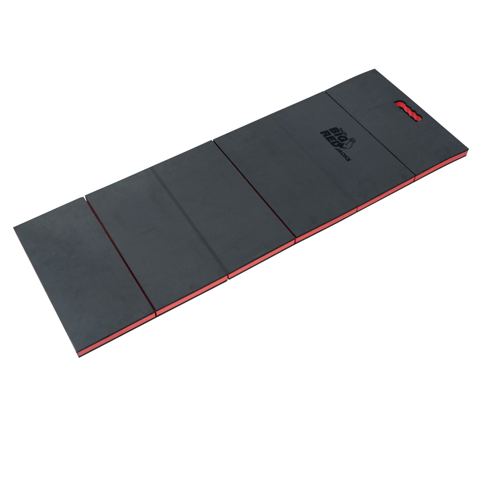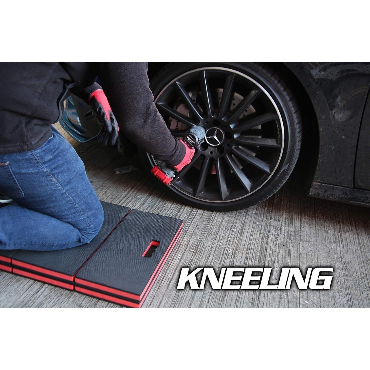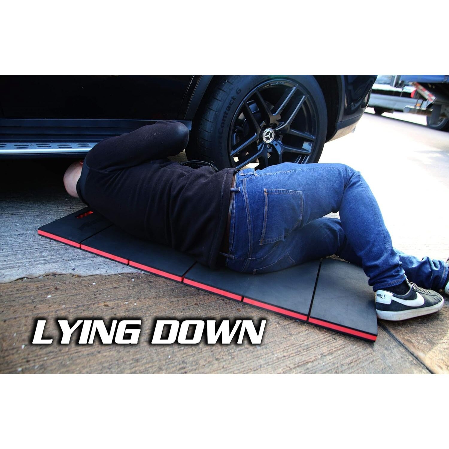 Can be used folded for sitting, kneeling, or unfolded for under-car vehicle work.