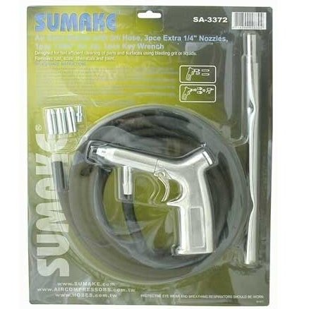 1 gab. Pistole 1 gab. Gumijas šļūtene 3 gab. 1/4" Papildu uzgali 1 gab. Sešstūra atslēga 1 gab. Pagarināšanas tērauda caurule 1 gab. Adapteris