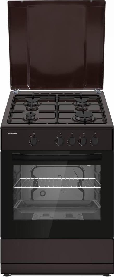 Heinner HFSC-SME66IBRW ir 60 × 60 cm brīvi stāvoša gāzes plīts ar četriem gāzes degļiem, automātisko aizdedzi un emaljētiem katlu balstiem. Gāzes cepeškrāsns ar dubultstikla durvīm, gāzes drošības sistēmu un metāla vāku. Specifikāciju tabula: Parametrs: Vērtība Produkta tips: Gāzes plīts Zīmols / Modelis: Heinner HFSC-SME66IBRW Plīts izmērs: 60 × 60 cm Degļu skaits: 4 Aizdedze: Automātiskā (virsmai) Katlu balsti: Emaljēti Gāzes drošības sistēma: Jā (virsmai un cepeškrāsnij) Cepeškrāsns durvis: Dubultstikls Vāks: Metāla Komplektā: Cepešpanna, reste LPG sprauslas: Iekļautas Izmēri (P × Dz × A): 59.8 × 61 × 86 cm Krāsa: Brūna