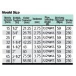 Caurulēm 1/2" (12.5 mm), 3/4" (19 mm), 1" (25 mm), 1-1/4" (32 mm), 1-1/2" (40 mm), 2" (50 mm), 2-1/2" (65 mm), 3" (75 mm)
