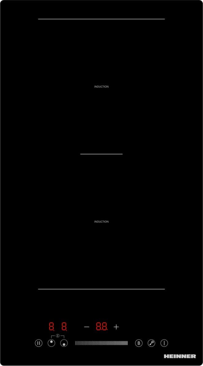 Iebūvējamā indukcijas plīts Heinner HBHI-M2ZB1FXTC , 2 gatavošanas zonas, pastiprinājums, skārienjūtīga vadība, taimeris, bērnu drošības bloķēšana, atlikušā siltuma indikators, 52×30 cm, melna