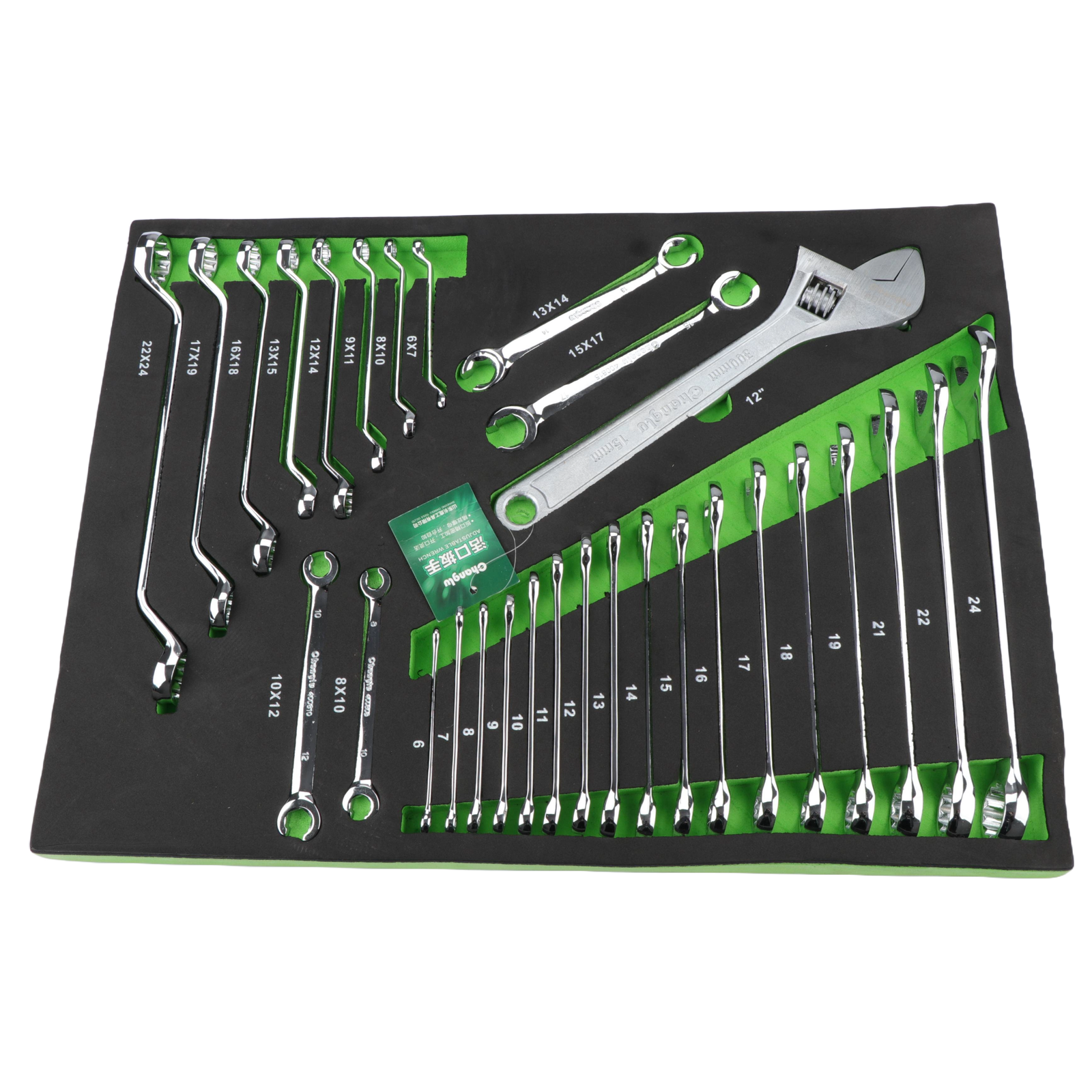 Paplāte. Dubultā gala dubultā dziļuma atvertnes atslēgas, flancētas uzgriežņu atslēgas un regulējamās atslēgas komplekts 30 gab.