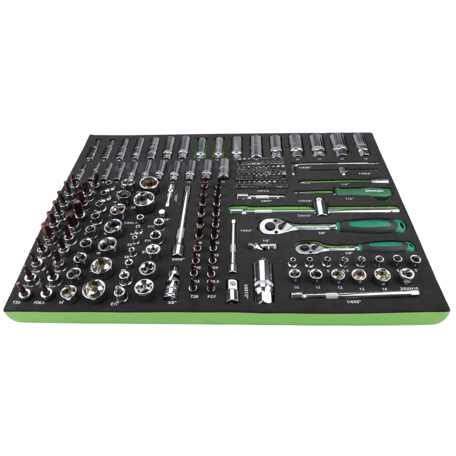 Paplāte. 1/4″ + 3/8″ Dr. Kontaktu komplekts 169 gab.