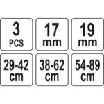 29 mm – 42 mm; 38 mm – 62 mm; 54 mm – 89 mm