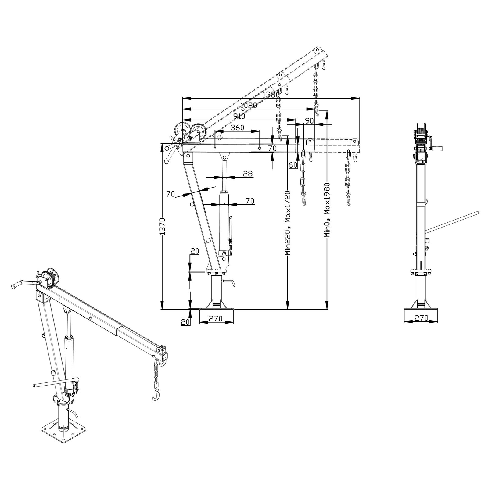 Kravas automašīnas krāns 0.9t ar rokas vinču