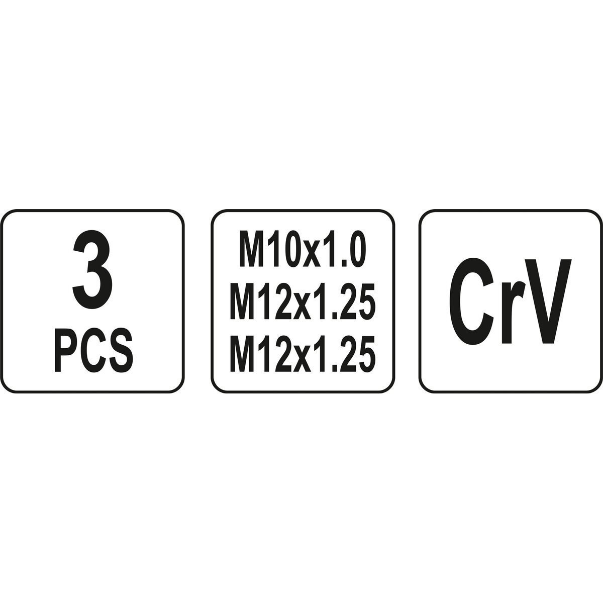 Izmēri: M12 x 1.25 x 59 mm, M12 x 1.25 x 94 mm un M10 x 1 x 107 mm