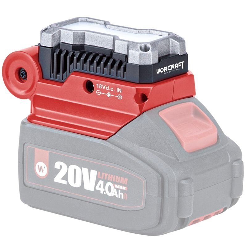 Ierīcei ir LED apgaismojums, kas uzstādīts 7 pozīcijās. Turklāt adapteri var izmantot WORCRAFT sērijas akumulatoru uzlādēšanai.
