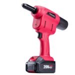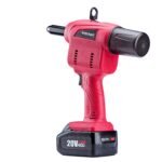 Komplektā ietilpst: kniedēšanas pistole, uzgriežņu atslēga, kniedes uzgaļu komplekts, 1 akumulators un lādētājs