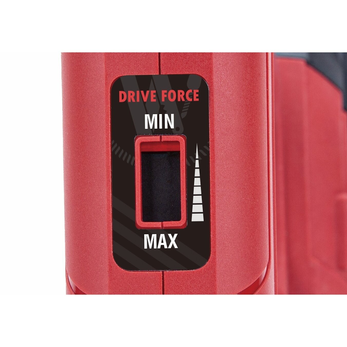 Indikators parāda vadīšanas spēka līmeni, un regulators ļauj pielāgot naglu vai skavu iekļuves dziļumu materiālā