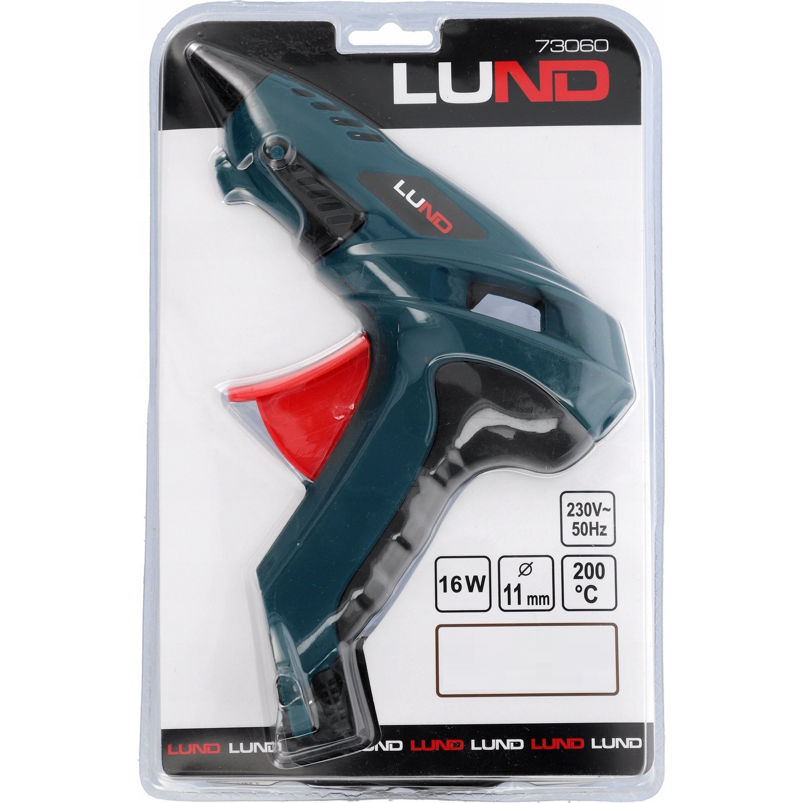 Jauda 16W Spriegums 230V / 50Hz Jauda 11g/min Darba temperatūra 200°C Līmes stieņa diametrs 11mm Uzkarsēšanas laiks 180 – 300 s