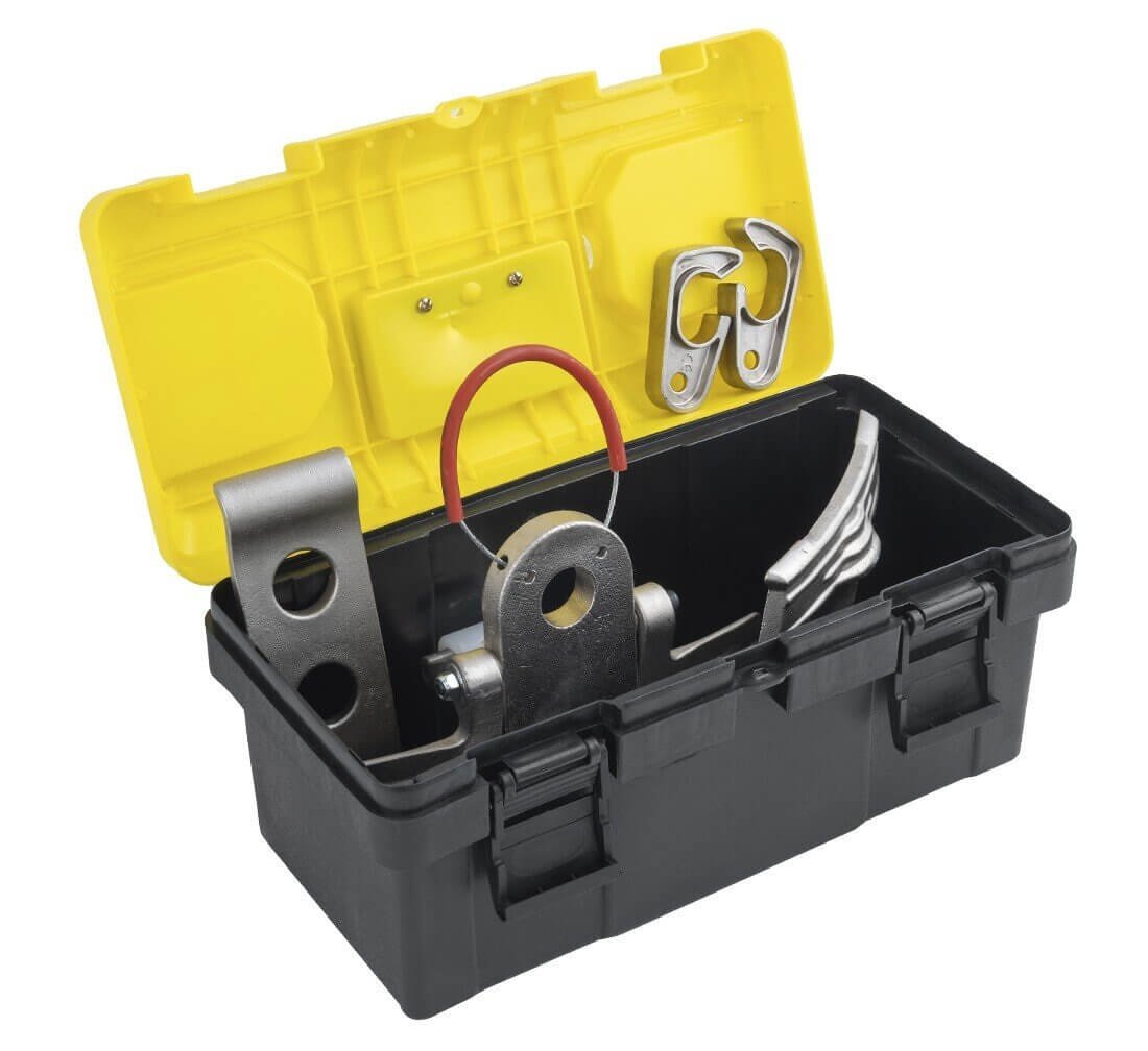 Šis īpašais instrumentu komplekts ir paredzēts riepu maiņai kravas automašīnām, puspiekabēm, piekabēm, autobusiem un lauksaimniecības tehnikai. Šis komplekts var palīdzēt ietaupīt naudu, izvairoties no augstiem riepu montāžas maksājumiem, kā arī var būt noderīgs uz ceļa. Komplektā ietilpst divas montāžas kastes un speciālas skavas bezkameru riepu montāžai/noņemšanai. Stiprinājumi perfekti pieguļ pie montējamās riepas loka malām, tāpēc nav jāuztraucas par riepu bojājumiem montāžas laikā. Katra stiprinājuma garums nodrošina ērtu un vieglu darbību.