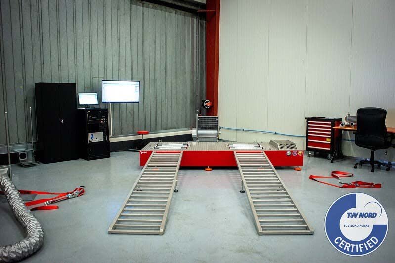 This single-axis modular power test bench has the same functions as the power test bench VT-2 / B1, it is equipped with two braking mechanisms. Thanks to these two braking mechanisms, you will be able to perform car power measurements, even up to 1000 HP. It also allows you to measure the power and torque of the internal combustion engine in two ways, inertly and with the inductive braking method. Measurements are made of the power generated by the car’s wheels in a continuous rotation mode or under conditions of simulating normal driving. The power test stand can be installed mobile or sunk into the pit. It can be configured with additional accessories or extended to perform power measurements on cars with two drive axles.