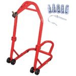 Uz priekšējā statīva motocikls tiek pacelts aiz stūres kolonnas apakšdaļas, tādējādi nodrošinot maksimālu piekļuvi motocikla priekšdaļai, kas ievērojami atvieglo motociklu tīrīšanu, remontu vai apkopi