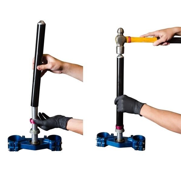Drošs un ērts veids, kā uzstādīt apakšējo stūres riteņa lodīšu gultni Komplektā ietilpst trīs alumīnija gredzeni un īpašs uzstādīšanas rīks, ko izmantot kopā ar mīksto āmuru </p>