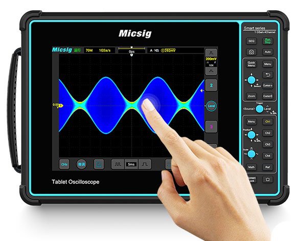 Turklāt osciloskopu var izmantot trīs vadības režīmos: pilnīga skārienvadības funkcija, fiziskā vadības funkcija ar spiedpogu un abu šo funkciju kombinācija. Integrētā 7500 mAh litija jonu baterija kopā ar mīksto TPU+ABS aizsargvāciņu padara šo osciloskopu ideāli piemērotu lietošanai mājās un darbnīcā.