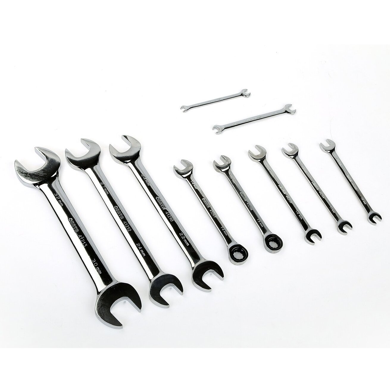 2 gab. Riekstu kombinētās atslēgas 13, 14 mm 8 gab. Divpusējās atslēgas 6 x 7, 8 x 10, 10 x 12, 11 x 13, 12 x 14, 22 x 24, 24 x 27, 30 x 32 mm
