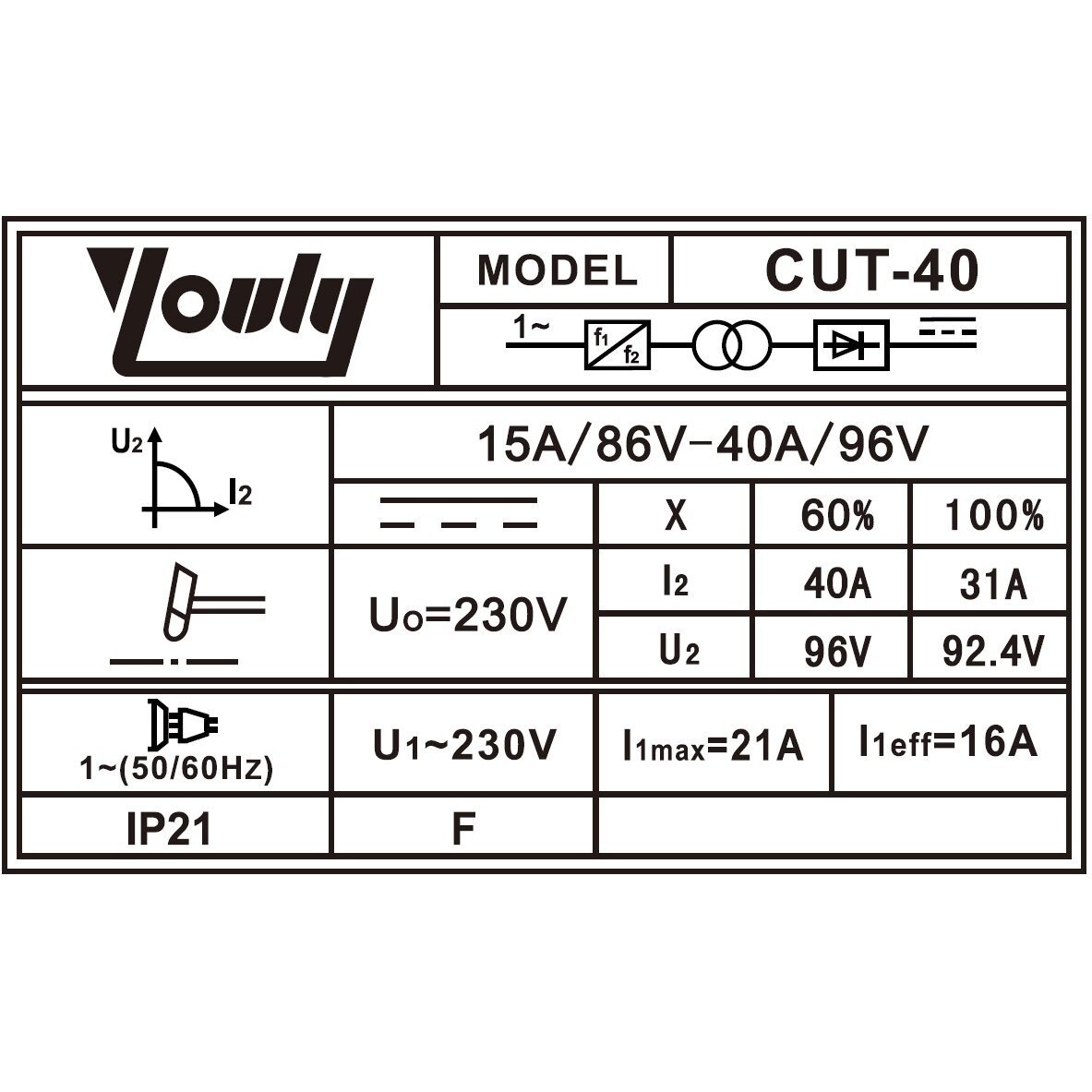 Komplektā ietilpst: barošanas kabelis 1.6 m, griešanas degli (skārienu tips) ar 4 m kabeli, šļūtene, zemes vads 1.6 m un spiediena reducētājs