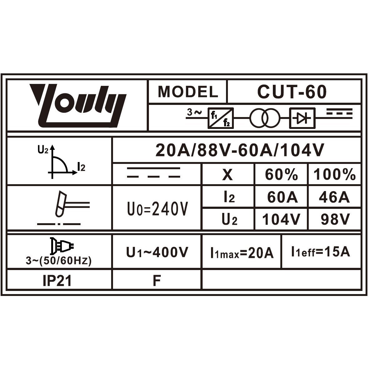 Strāvas diapazons 20 – 60 A