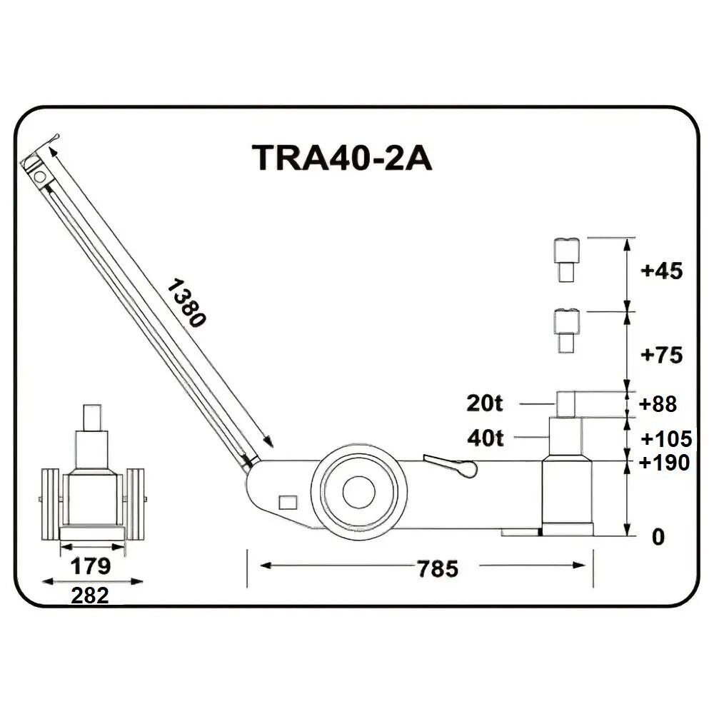Pneimatiskais – hidrauliskais domkrats 40t/20t