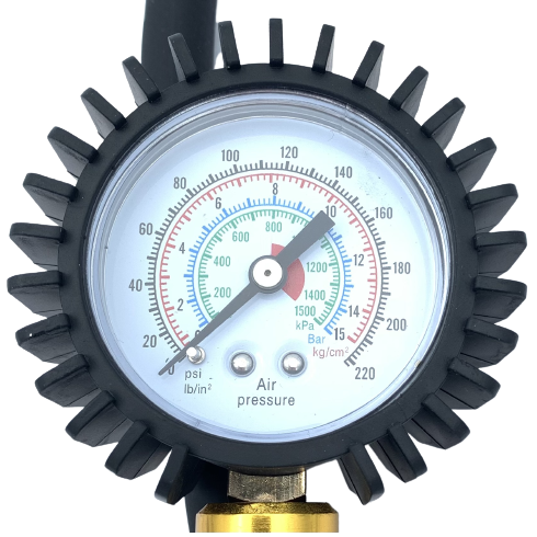 Manometrs Ø 50 mm Maksimālais spiediens 15 bar Šļūtenes garums 300 mm Piepumpēšanas galviņas garums 140 mm
