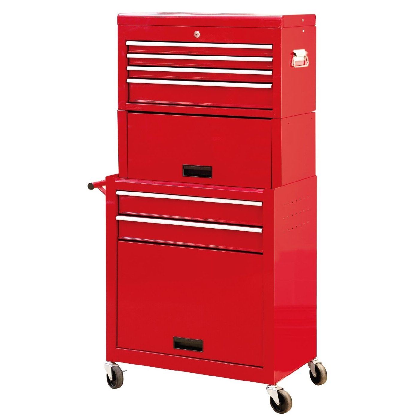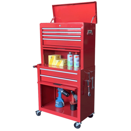 Augšējā kaste pilnībā noņemama, augšējā kaste iepakota ritenīšu skapī transportēšanas laikā