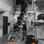 Elektriskais riepu transportieris vieglo un kravas automobiļu riepu transportēšanai uz augstāku vai zemāku līmeni līdz 60°. Ierīcei abos galos ir vadības paneļi un tērauda enkurplāksne stabilitātei. Uzstādīšana ir vienkārša, un ierīce ir pieslēgta 230 V elektrotīklam.