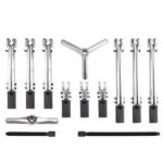 1 gab. Divkāju slīdnis 1 gab. Trīskāju slīdnis 3 gab. Pagarinājumi 100 mm 3 gab. Pagarinājumi 200 mm 3 gab. Pagarinājumi 250 mm 1 gab. Smalko vītņu vārpsta 160 mm 1 gab. Smalko vītņu vārpsta 270 mm