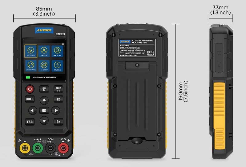 Automobiļu diagnostikas multimetrs ir jauns rokas diagnostikas osciloskopa multimetrs, kas apvieno digitālo osciloskopu, digitālo multimetru un transportlīdzekļa elektrisko ķēžu pārbaudes funkciju. Tas ir izstrādāts, izmantojot digitālo skenēšanas un kontroles tehnoloģiju.