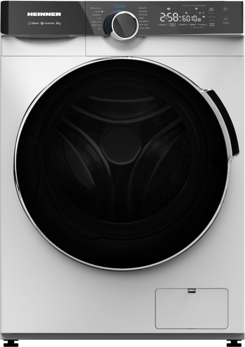 Slim veļas mazgājamā mašīna Heinner HWM-M814IVKA+++, 8 kg, 1400 apgr./min., Energoefektivitātes klase A, Invertera motors, 14 mazgāšanas programmas, Digitālais displejs, Bērnu drošības slēdzis, Sterilizācijas programma, Iecienītās programmas atmiņas funkcija, Izmēri (P × Dz × A): 59,5 × 47,5 × 85 cm, Krāsa: Balta